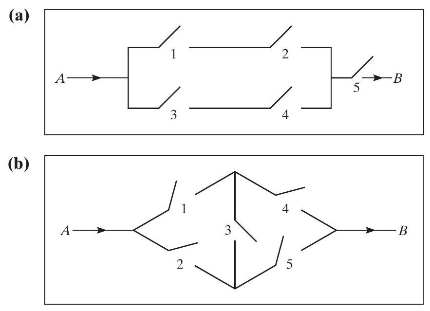 \alpha \sum_{i=8}^{12}\binom{12}{i} \theta^{i}(1-\theta)^{12-i}+(1-\alpha) \sum_{i=5}^{12}\binom{12}{i} \theta^{i}(1-\theta)^{12-i} $$ $\square$ **예제 6f** 통신 시스템은 $n$개의 구성 요소로 이루어져 있으며, 각 구성 요소는 독립적으로 확률 $p$로 작동한다. 전체 시스템은 구성 요소의 절반 이상이 작동할 경우 효과적으로 작동할 수 있다. (a) 5-component 시스템이 3-component 시스템보다 효과적으로 작동할 가능성이 더 높은 $p$ 값은 무엇인가? (b) 일반적으로, $(2 k+1)$-component 시스템이 $(2 k-1)$-component 시스템보다 더 나은 경우는 언제인가? **풀이** (a) 작동하는 구성 요소의 수는 매개변수 $(n, p)$를 갖는 **이항 확률 변수(binomial random variable)**이므로, 5-component 시스템이 효과적일 확률은 다음과 같다.\binom{5}{3} p^{3}(1-p)^{2}+\binom{5}{4} p^{4}(1-p)+p^{5}