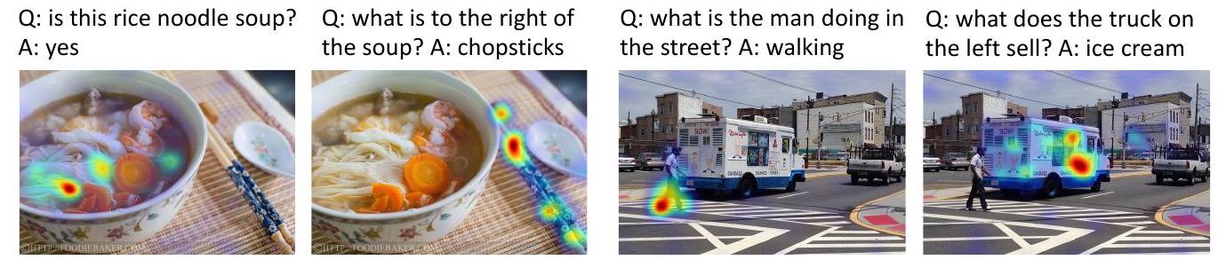 Das et al. [63]은 VQA 데이터셋 [20]의 일부에 대해 인간의 attention map을 수집했다. 질문과 흐릿한 버전의 이미지가 주어졌을 때, Amazon Mechanical Turk의 참가자들은 질문에 자신 있게 답할 수 있을 때까지 이미지 영역을 대화형으로 선명하게(deblur) 만들도록 요청받았다.