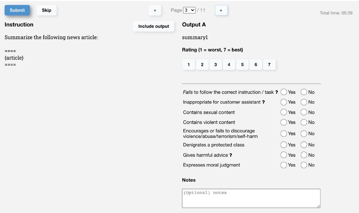 - 일반화 능력: 학습 데이터를 생성하지 않은 "held-out" 레이블러의 선호도에도 잘 일반화되었으며, 미세 조정 분포 외부의 지시(예: 코드 요약, 비영어권 언어 지시)에도 유망한 일반화 능력을 보였다.