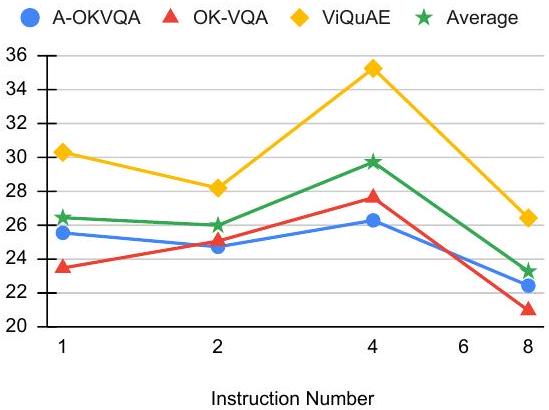 제안된 데이터셋의 효과를 평가하기 위해, 우리는 강력한 vision encoder인 BLIP-2 [23]와 LLaMA [49]에서 파생된 대규모 언어 모델인 Ziya-13B [61]를 통합하여 vision-language model인 Ying-VLM을 개발한다. 시각 토큰을 LLM의 텍스트 prompt로 통합하는 성공적인 접근 방식 [7, 63, 28]을 기반으로, 우리는 두 단계의 학습 프로세스를 사용한다: (1) 초기 단계는 LAION400M [41]에서 이미지 캡셔닝을 통해 시각 feature를 텍스트 embedding과 정렬하고, (2) 두 번째 단계는 우리 데이터셋의 선택된 task에 대한 instruction tuning을 수행하여 모델을 향상시킨다. 실험 결과, Ying-VLM은 지식 기반 VQA task에서 강력한 baseline 모델을 능가하며, 미학습 비디오 및 교차 언어 task에 대한 향상된 일반화 성능을 보여준다. 추가 분석에 따르면, 향상된 성능은 instruction tuning을 위한 task 증가에 해당하며, instruction의 다양성 또한 결과에 영향을 미친다.