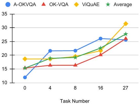 - 지식 기반 VQA (KVQA): OK-VQA, A-OKVQA, ViQuAE.
