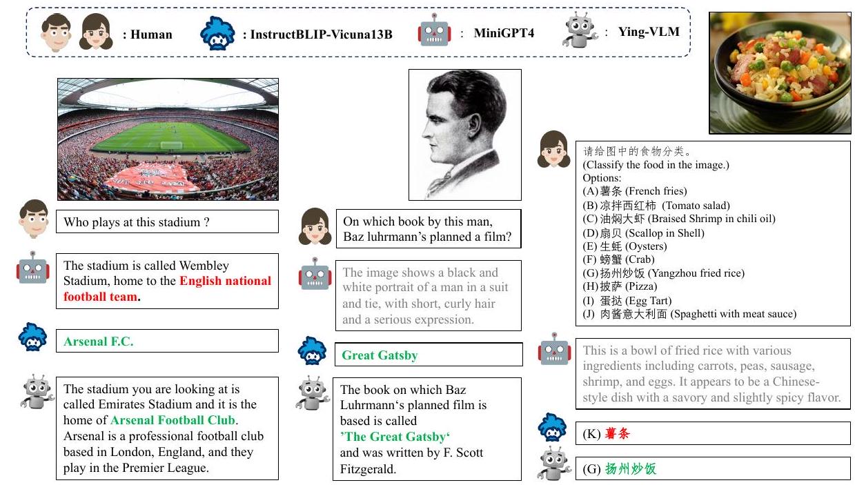 본 논문은 두 가지 주요 기여를 제시한다: (1) 우리는 범용 멀티모달 에이전트 개발을 가능하게 하는 오픈 소스 대규모 Multimodal, multilingual Instruction Tuning (IT) 데이터셋을 소개한다. (2) 우리는 지식 기반 VQA task에서 뛰어난 성능을 보이고, 미학습 비디오 QA 및 중국어 멀티모달 task에 대한 강력한 일반화 능력을 입증하며, 향후 연구에 귀중한 통찰력을 제공하는 시각 비서인 Ying-VLM을 개발한다.