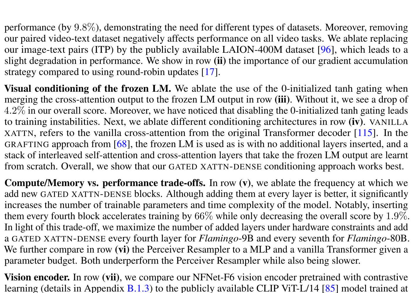 Table 12는 vision feature의 차원을 보여준다 (Eq. 3의 VisionExtractor(•) 함수를 거친 후). ResNet-50의 경우, 패치와 유사한 feature를 모방하기 위해 ResNet-50의 풀링된 feature를 텍스트 시퀀스와 동일한 길이로 반복한다. 여기서 각 패치는 풀링된 이미지 feature와 동일하다.
