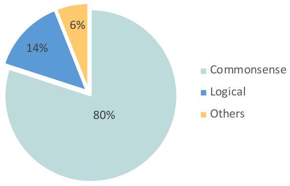 가장 흔한 오류 유형은 **상식 오류(commonsense mistakes)**로, 전체 오류의 **80%**를 차지한다. 이러한 오류는 모델이 **지도 해석(Figure 12a), 이미지 내 객체 수 세기(Figure 12b), 또는 알파벳 활용(Figure 12c)**과 같이 상식 지식을 요구하는 질문에 직면했을 때 발생한다.