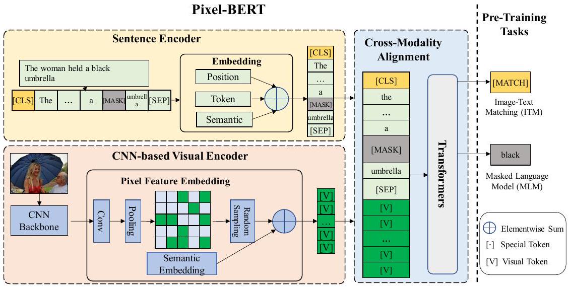 Huang, Zhicheng, et al. "Pixel-bert: Aligning image pixels with text by deep multi-modal transformers." arXiv preprint arXiv:2004.00849 (2020).