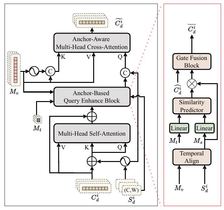 SA-DETR은 Moment Retrieval에서 span anchor의 중요한 역할을 강조하며, 인스턴스 관련 Query Initialization과 span aware Query Refinement에 중점을 둔다.- Multi Modal Align Encoder: 모달 융합 전후에 비디오-텍스트 및 클립-텍스트 수준에서 feature를 정렬하여 거친 수준에서 미세한 수준으로 비디오와 텍스트 간의 관계를 이해하도록 돕는다. 또한, Moment Retrieval 및 Highlight Detection task의 다양한 관점에서 융합된 시각 feature를 강화한다.