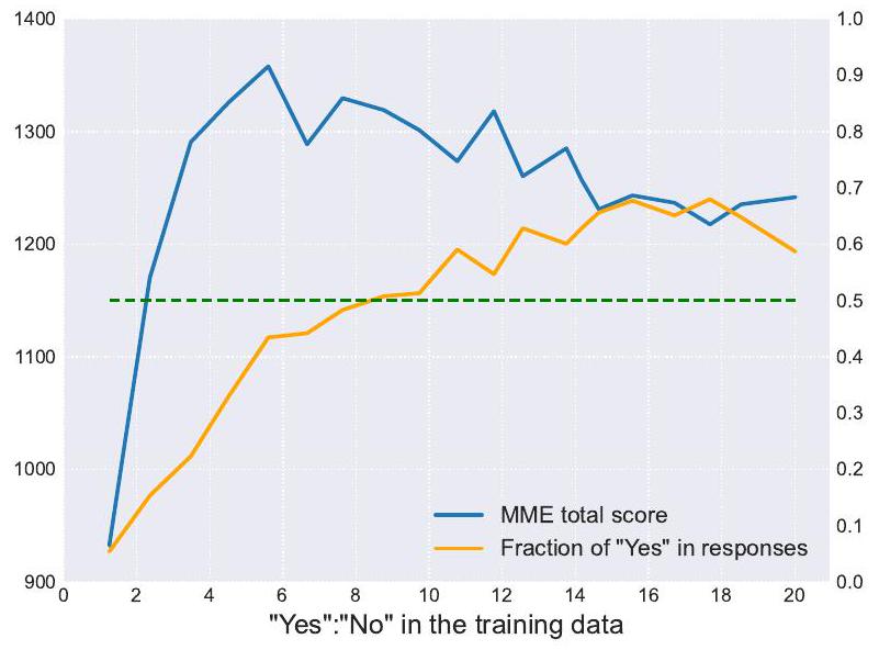Figure 5. 학습 데이터의 "Yes:No" 비율과 모델 성능 간의 관계.