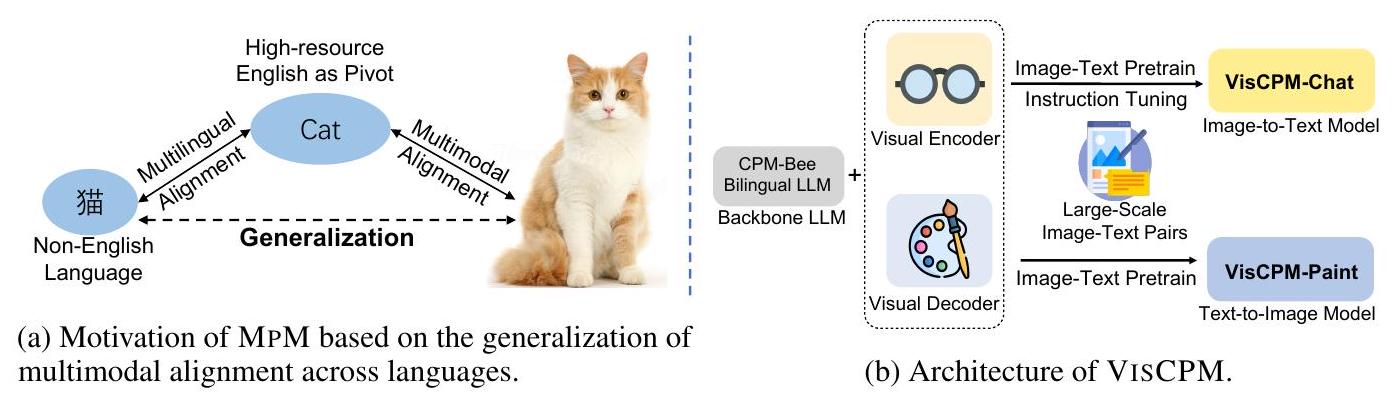 Figure 1: MpM과 VisCPM의 동기 및 아키텍처 개요.