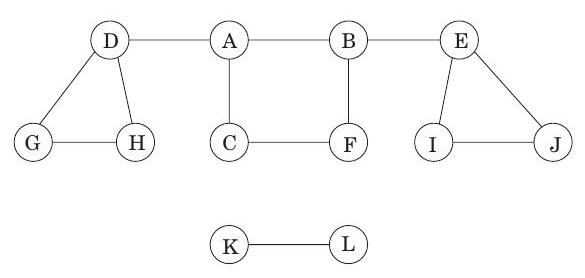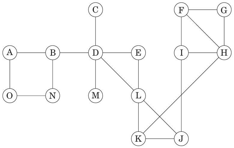 (b) 아래 그래프의 edge를 이중 연결 구성 요소로 분할하고, bridge와 분리 정점을 식별하라.