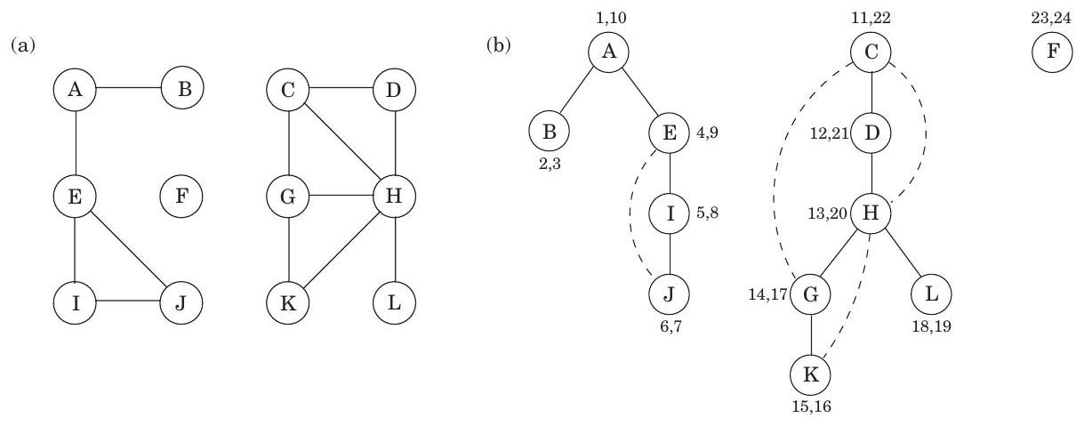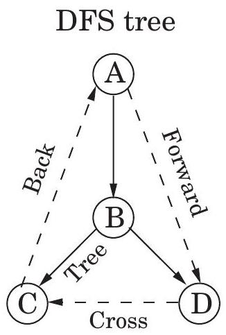 그림 3.7에는 두 개의 forward edge, 두 개의 back edge, 그리고 두 개의 cross edge가 있다. 이들을 찾을 수 있는가?