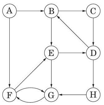 3.4. 다음 방향 그래프 에 대해 강하게 연결된 구성 요소(strongly connected components, SCCs) 알고리즘을 실행하라. 에 대해 DFS를 수행할 때, 탐색할 정점을 선택할 때마다 항상 알파벳 순서로 가장 먼저 오는 것을 선택하라.
