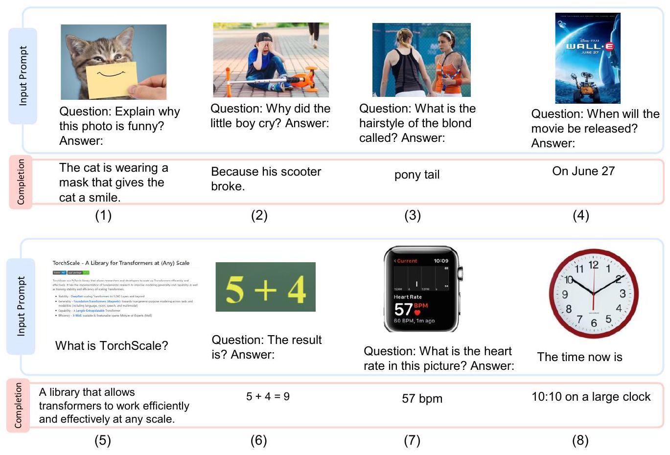 Kosmos-1은 언어와 를 모두 인지하고, in-context 학습, 추론, 생성을 수행할 수 있다.