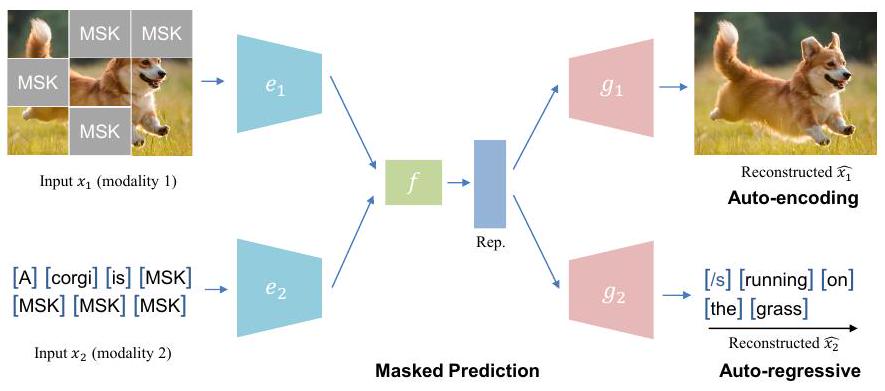 - Masked Prediction: 입력 데이터의 일부 요소를 마스킹하고 모델이 누락된 정보를 예측하도록 훈련하는 방식 (자동 인코딩, 자동 회귀).