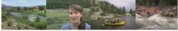 camera pans all around lake with several shots of people riding down river and leads into shots of people riding the river the river the people continue to speak to the camera <END>